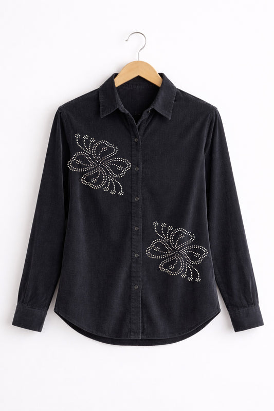 Women’s Velvet Shirt with Jarkan Diamond Butterfly Motifs