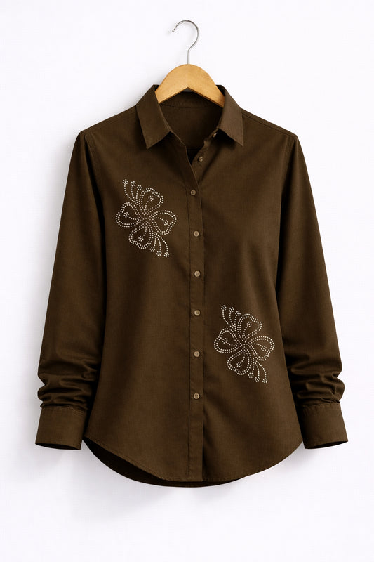 Women’s Rayon Cotton Shirt with Jarkan Diamond Butterfly Motifs