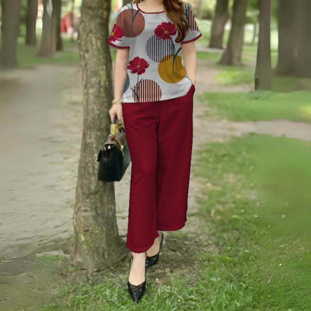 Stylish and Comfortable Graphic Co-ord Set in Maroon