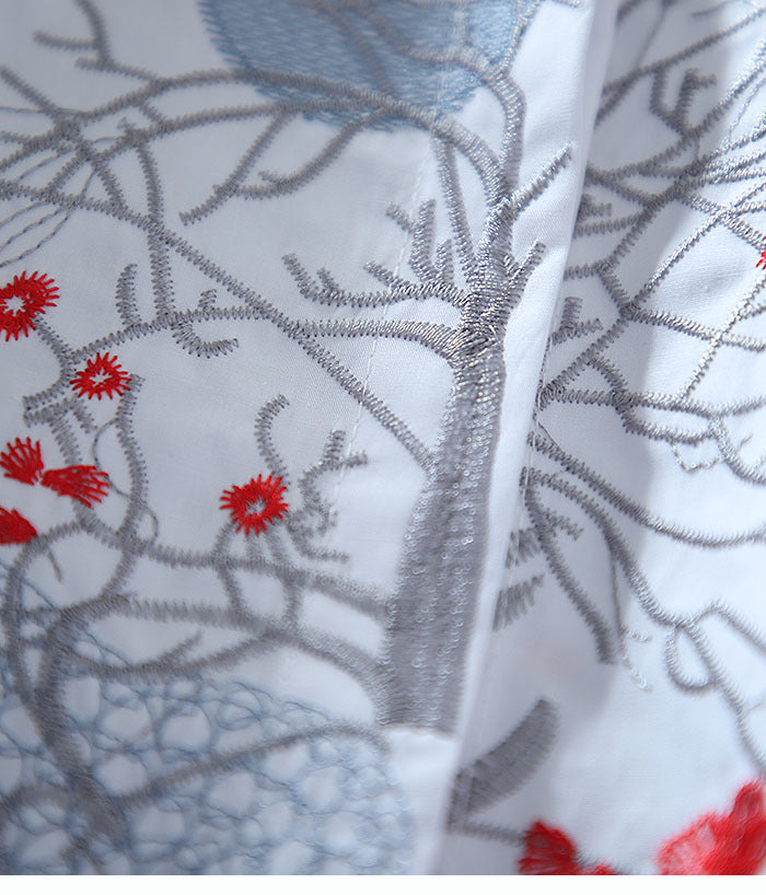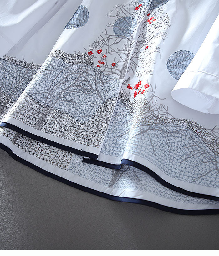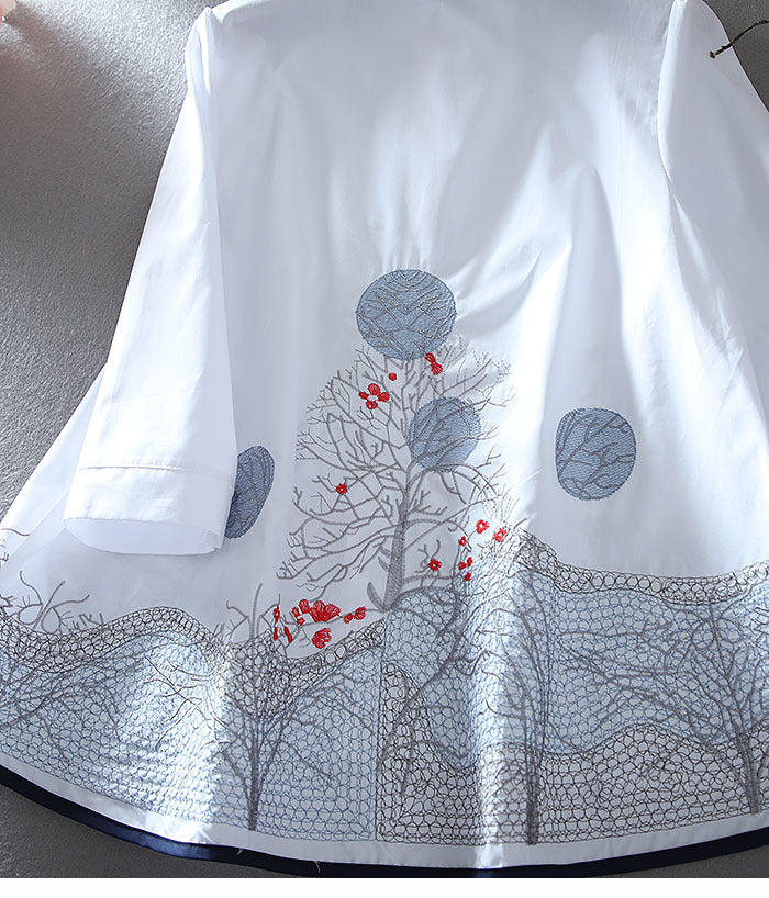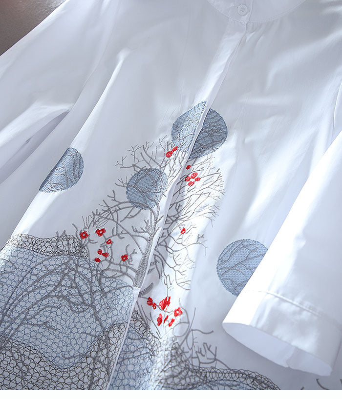 White Tunic Top with Unique Forest-Inspired Embroidery